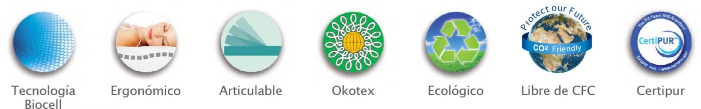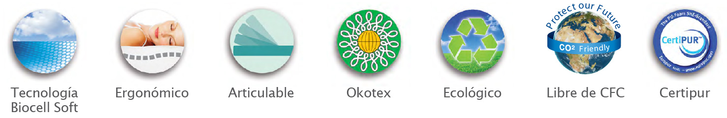 Colchón de tecnología Biocell, formado por miles de células comunicadas entre sí. Aporta la firmeza y adaptabilidad necesarias para disfrutar de un descanso saludable.
